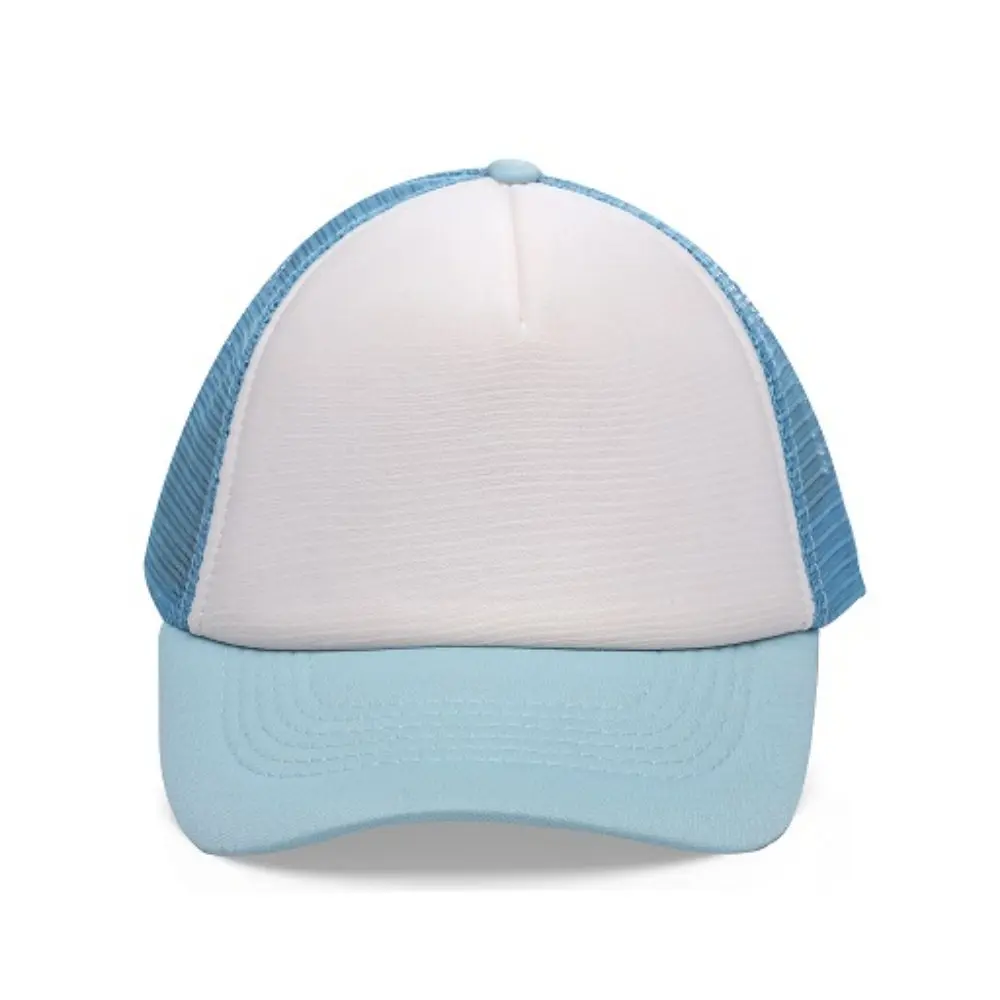 Gorro en poliéster de cinco gajos. Visera y cuerpo con tela de red. Ajuste con malla plástica regulable. Botón y frente de 17 x 20 cm. Medida: desde 56.5cm circunferencia (Expandible). Logo estampado.