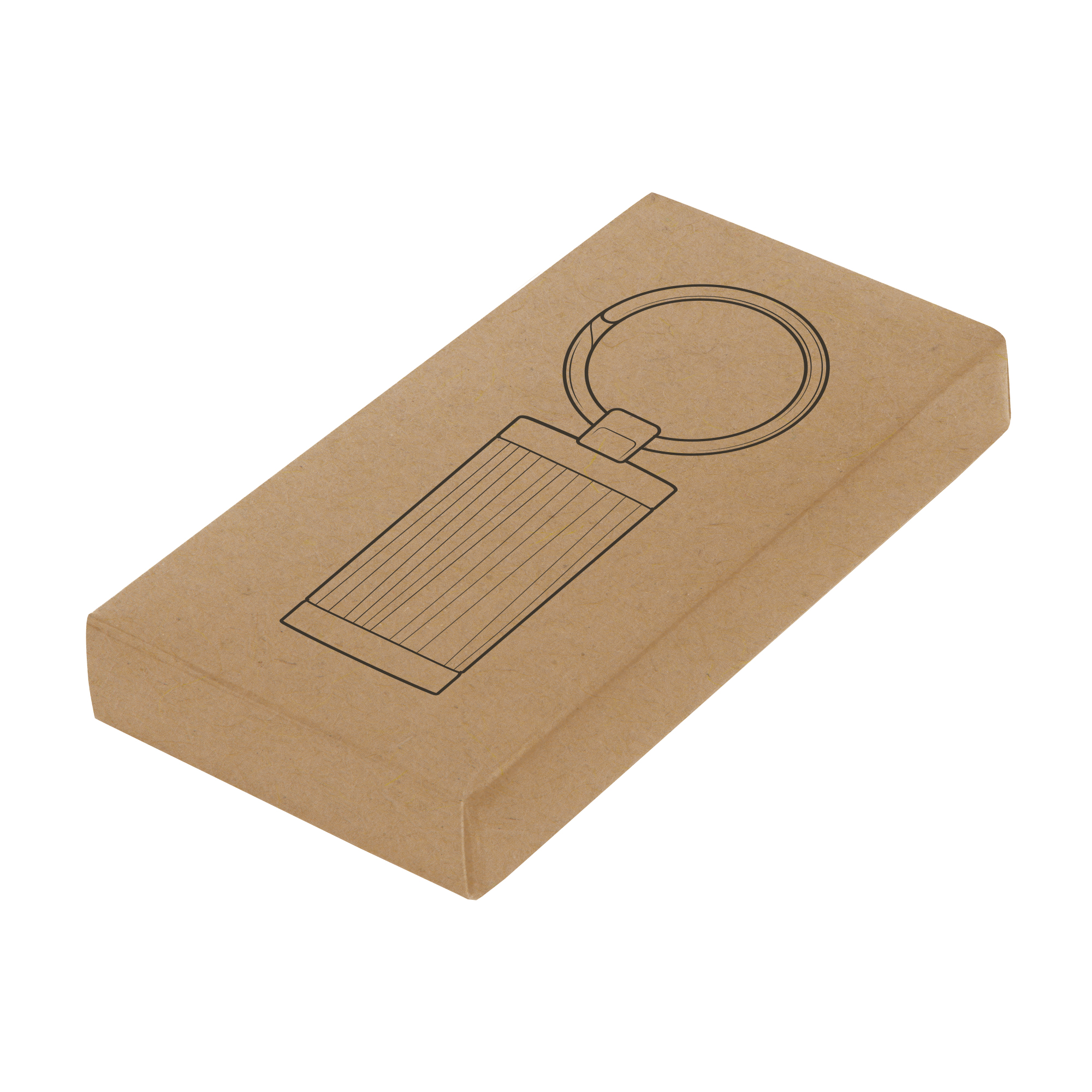 Llavero rectangular de bambú con detalles metálicos. Presentación en caja de regalo.