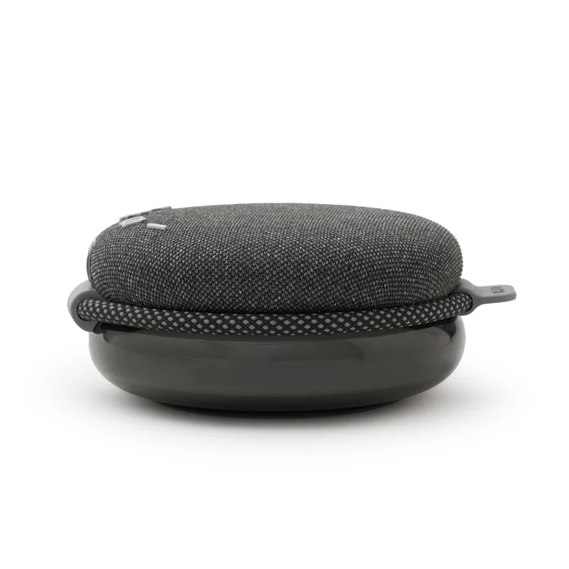 El parlante Fullmoon cuenta con luces led multicolor y una correa ajustable para que lo lleves a donde quieras. Está fabricado en ABS y silicona, con un recubrimiento de tela.