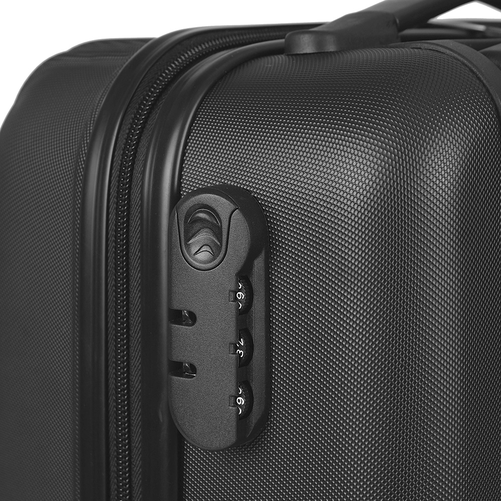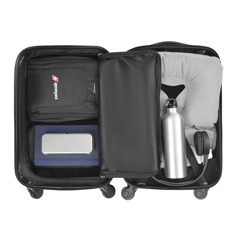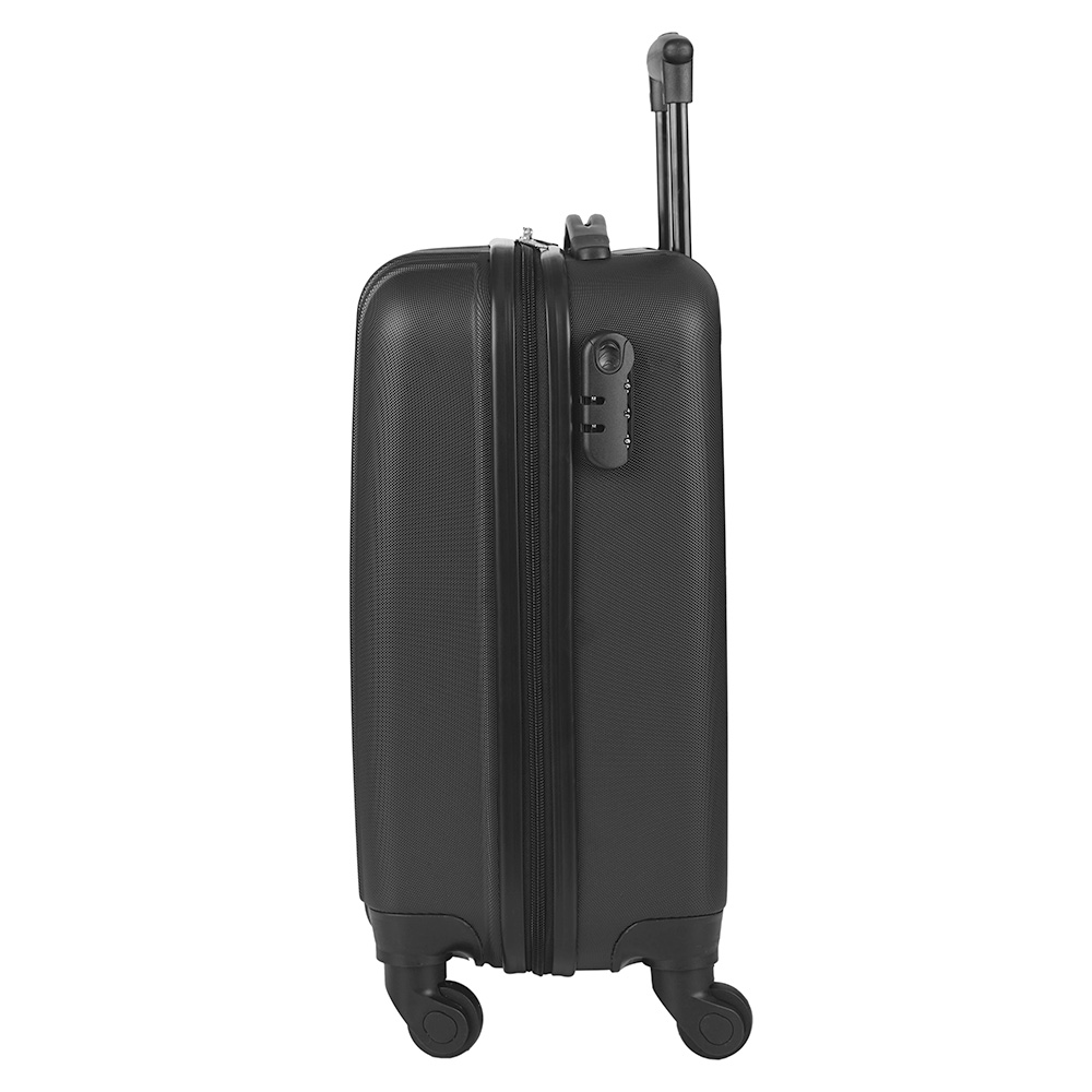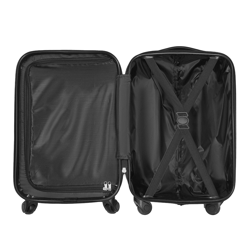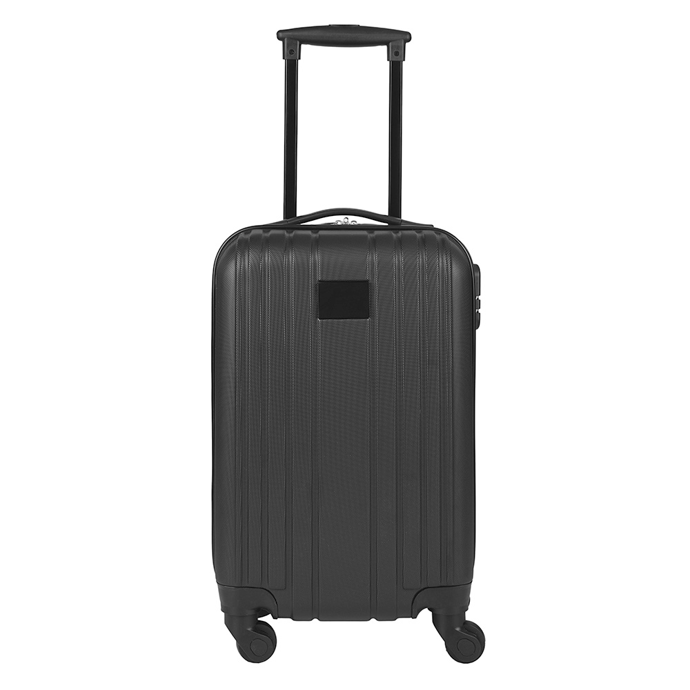 Trolley realizado en material ABS rígido. Manija regulable en altura, interior forrado, contiene tiras de compresión internas en uno de los módulos y en el otro división interna con cierre. Sistema de ruedas giratorias 360° reforzadas. Cierre con lock. Chapa frontal metálica para aplicar logo. Medidas: 22 x 31 x 51 cm. Foto iliustrativa, no incluye los productos que están en su interior.